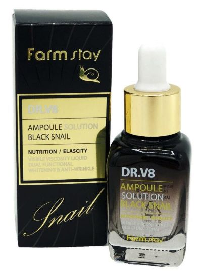 Ампульная сыворотка для лица с муцином черной улитки FarmStay DR.V8 Ampoule Solution Black Snail, 30 млВысококонцентрированная ампульная сыворотка возвращает коже упругость и эластичность, насыщает влагой, мягко осветляет пигментацию и возвращает коже здоровое сияние. Муцин черной улитки ускоряет регенерацию клеток кожи, способствуя уменьшению глубины морщин и повышению упругости, выравнивает тон, осветляя пигментацию и предотвращая её появление, обладает активным противовоспалительным и заживляющим действием, предупреждает появление воспалений и способствует рассасыванию застойных пятен, шрамов и рубцов.Производитель: FarmStay 959,00 ₽ Количество: В корзину Пользовательский список пожеланий OKДобавить в список пожеланийСравнитьСообщить другуЭкстракт икры активизирует выработку коллагена, возвращая коже эластичность и упругость, разглаживает мимические возрастные морщины и заломы, подтягивает овал лица. Также в составе: ниацинамид, токоферол и аденозин. Способ применения: нанесите 2-3 капли средства на чистую тонизированную кожу.ХарактеристикиИмя атрибутаЗначение атрибутаОбъём30 млПредостережениеИсключительно для наружнего использования. Прекратите использование и проконсультируйтесь с врачом при возникновении нежелательных симптомов, таких как покраснение, сыпь или опухлость. Не используйте на открытых ранах или поврежденной коже. Держите вдали от детей и домашних животных.Срок годности3 годаСоставWater, Butylene Glycol, 1,2-Hexanediol, Glycerin, Niacinamide, Alcohol Denat. (1,9%), Betaine, Sodium Hyaluronate, Coceth-7, PPG-7-PEG-9 Lauryl Glycol Ether, PEG-40 Hydrogenated Castor Oil, Polylglumatic Acid, Adenosine, Sodium Polyacrylate, Fragrance, Disodium EDTА, Ргоруlenе Glycol, Beta-Glucan, Hamamelis Virginiaгa (Witch Hazel) Water, Snail Secretion Filtrate, Alcohol (0,0003%), Caviar Extract.ПроизводствоЮжная Корея
