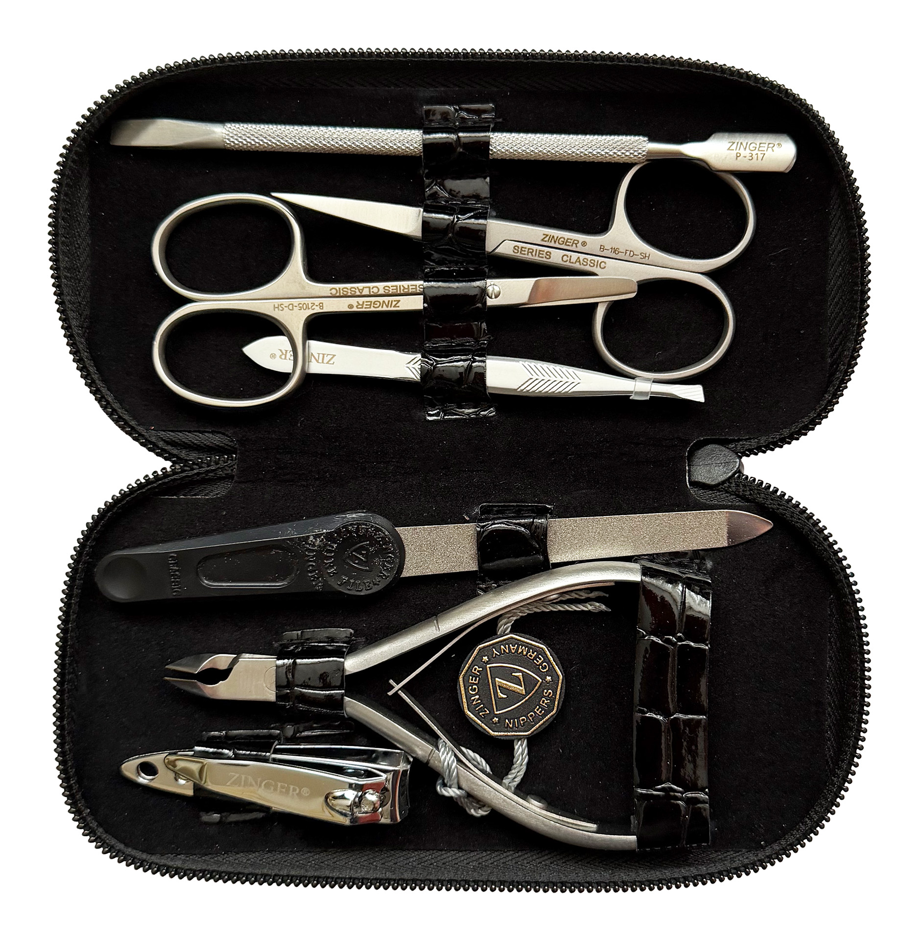 Маникюрный набор мужской Zinger MS-8105 SM, 7 предметов, чёрныйМаникюрный набор c инструментами ZINGER MS-8105 S. Внутренняя отделка футляра - мягкий велюр, имитация замши. Подарочная коробка с логотипом, внутри отделана бархатной бумагой. В набор входят 7 предметов: кусачки, книпсер, ножницы для ногтей, ножницы для бороды и усов, пинцет скошенный, пилка металлическая, пушер. Цвет напыления-серебристый.Производитель: Zinger 3 700,00 ₽ Количество: В корзину Пользовательский список пожеланий OKДобавить в список пожеланийСравнитьСообщить другуИнструменты изготовлены из высококачественной стали марки AISI 420 (40Х13). Технология закалки позволяет сочетать необходимую упругость и высокую твёрдость металла. Вся серия заточена вручную, по стандартам мастеров маникюра: с дополнительной обработкой лезвий и полировкой кончиков. ХарактеристикиИмя атрибутаЗначение атрибутаКоличество в упаковке7 шт.ЦветчёрныйПроизводствоРоссия