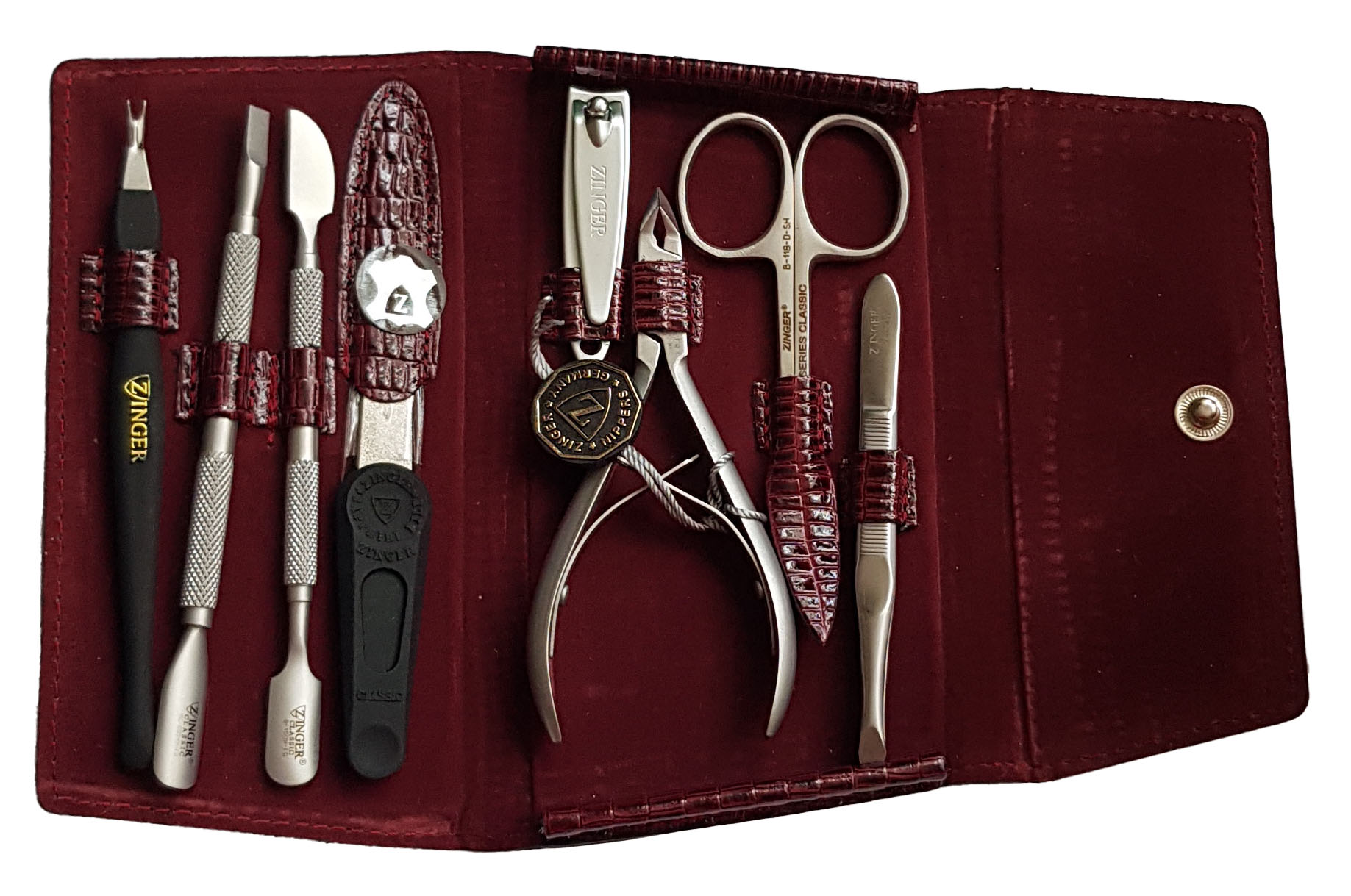 Маникюрный набор Zinger MS-1403-1 SM, 8 предметовZinger Маникюрный набор на кнопке 8 предметов (MS-1403S), бордовый. Футляр изготовлен из натуральной кожи. Внутренняя отделка футляра - мягкий велюр, имитация замши, цветом в тон коже футляра. Подарочная коробка с логотипом, внутри отделана бархатной бумагой. В набор входят 8 предметов: кусачки для кутикулы, ножницы для кутикулы, книпсер, пинцет скошенный, пилка алмазная, 2 пушера, триммер.Производитель: Zinger Цвет * Недоступно Недоступно Недоступно Недоступно Недоступно Недоступно 3 119,00 ₽ Количество: В корзину Пользовательский список пожеланий OKДобавить в список пожеланийСравнитьСообщить другуИнструменты изготовлены из высококачественной стали марки AISI 420 (40Х13). Технология закалки позволяет сочетать необходимую упругость и высокую твёрдость металла. Вся серия заточена вручную, по стандартам мастеров маникюра: с дополнительной обработкой лезвий и полировкой кончиков. Категория заточки - 3. Заточки хватает на 3-4 года активного домашнего использования или 1 год проф. использования. Цвет покрытия металла – серебристый.ХарактеристикиИмя атрибутаЗначение атрибутаКоличество в упаковке8 шт.ПроизводствоИталия