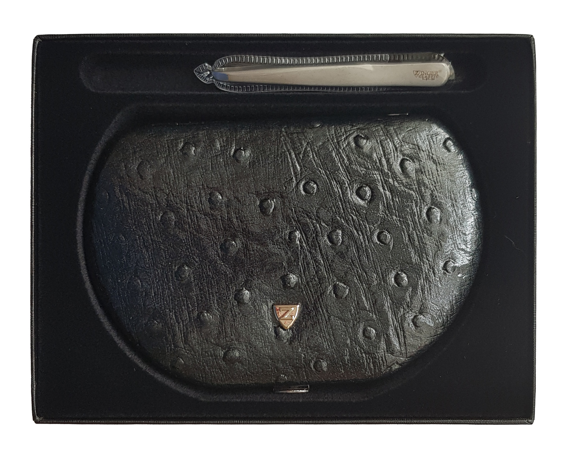 Маникюрный набор Zinger MSFE-1001-3 S. Футляр изготовлен из натуральной кожи. Внутренняя отделка футляра - мягкий велюр, имитация замши, цветом в тон коже футляра. В набор входят 9 предметов: кусачки для ногтей, маникюрные ножницы, пинцет, триммер, металлическая пилка, 4 маникюрные палочки. Отдельно - подарок - пинцет в контейнере. Цвет покрытия металла - серебристый.
