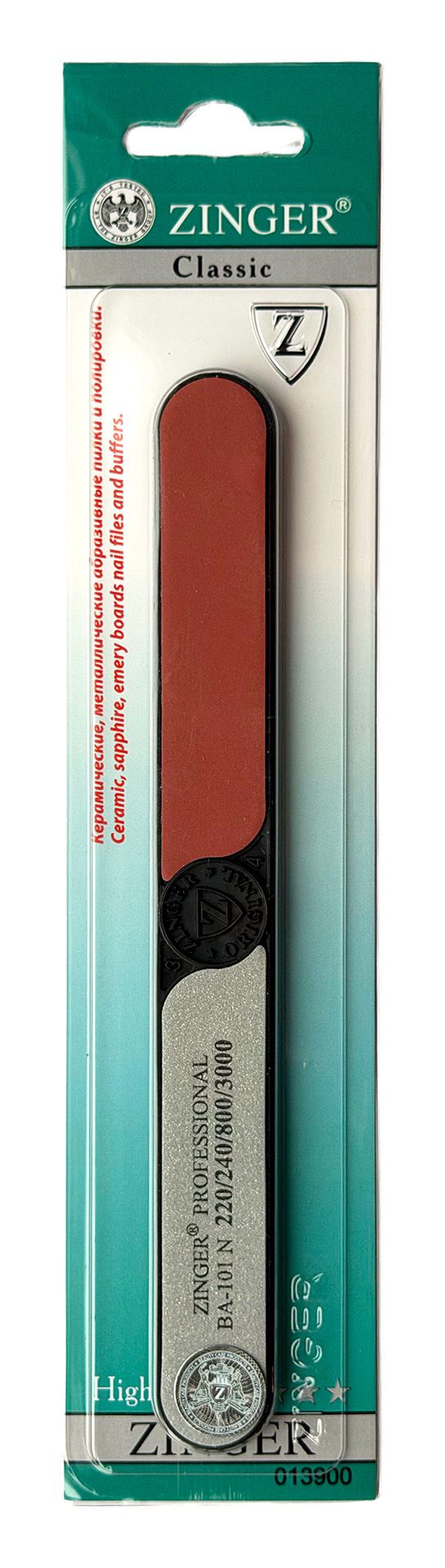 Пилка абразивная для ногтей четырёхсторонняя Zinger BA-101N, 220/240/800/3000 грит